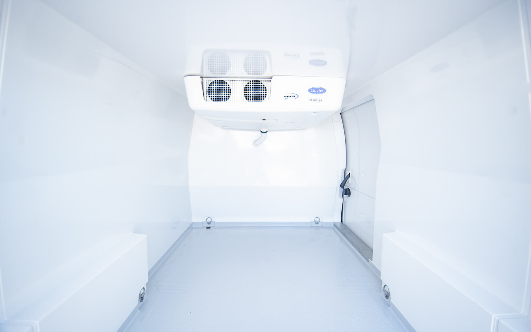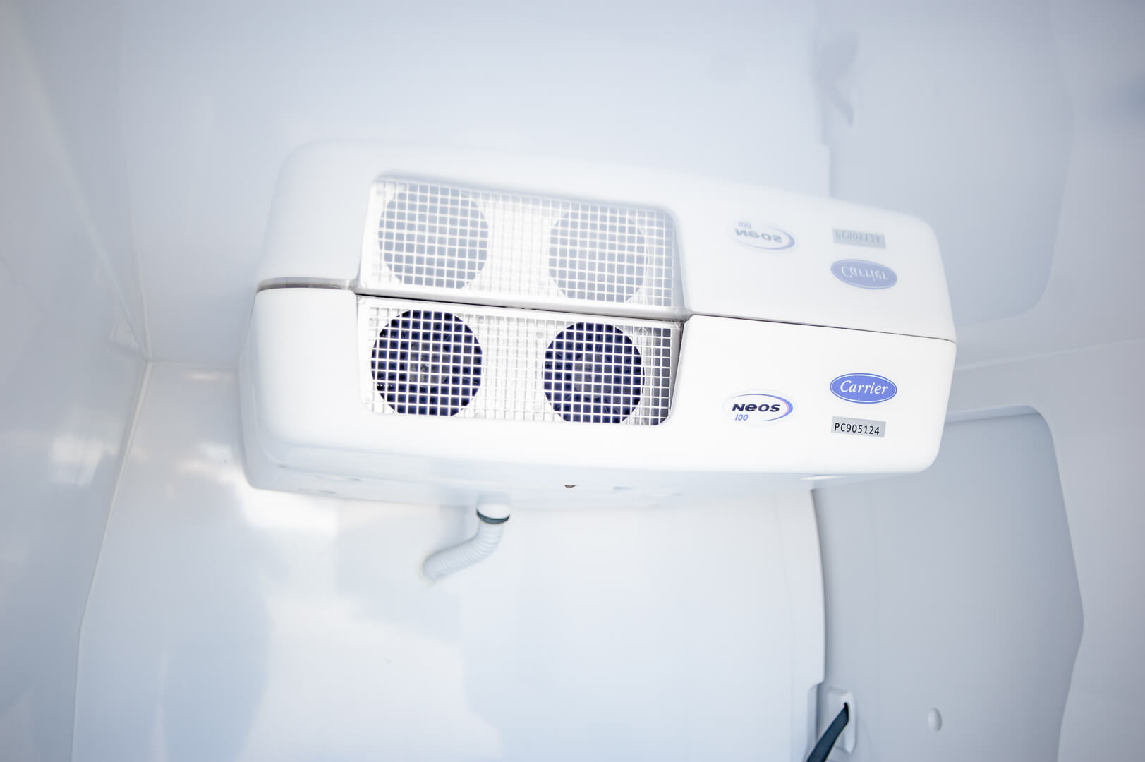 Voor de actieve koeling is het voertuig uitgerust met een Carrier NEOS 100 koelmotor, die betrouwbaar koelt tijdens het rijden. Daarnaast beschikt het voertuig over een 220V nachtkoeling, zodat de lading ook bij stilstand op de gewenste temperatuur blijft. Dit is ideaal voor situaties waarin het voertuig langere tijd geparkeerd staat of producten tijdelijk opgeslagen moeten blijven.