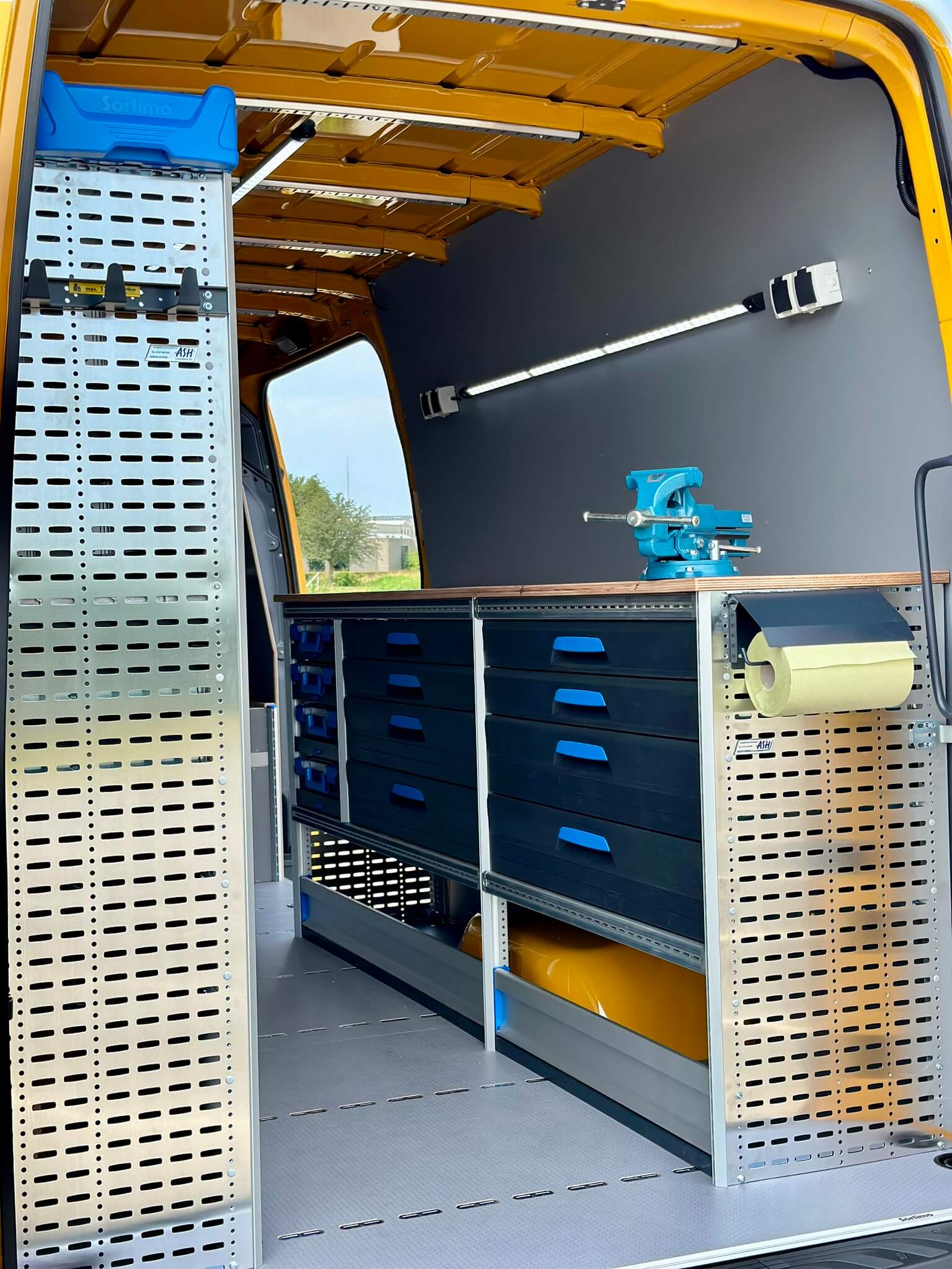 Mourik is een veelzijdig bedrijf dat actief in diverse sectoren zoals industrie, infrastructuur en milieutechniek. Hun verzoek aan ons was om een Mercedes-Benz Sprinter in te richten als mobiele servicebus voor hun technische dienst. De wens van de klant? Een volledig uitgeruste mobiele werkplaats creëren die niet alleen praktische opbergruimte biedt, maar ook is voorzien van verlichting, stroomvoorziening en perslucht, zodat de monteurs altijd en overal efficiënt kunnen werken.